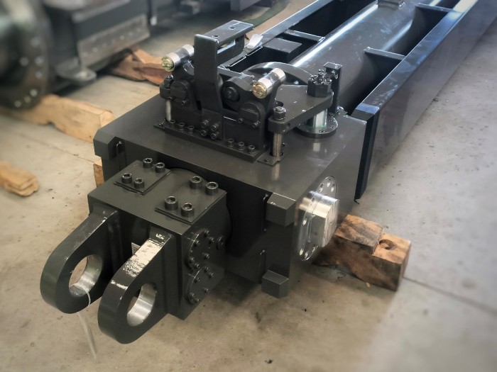 雙側銷插銷機構伸縮油缸(600V8)在特力液壓公司完成試制,并經測試合格,缸銷與臂銷運行正常,動作靈活,各項指標符合設計要求,標志著新一代雙側銷插銷機構成功下線。